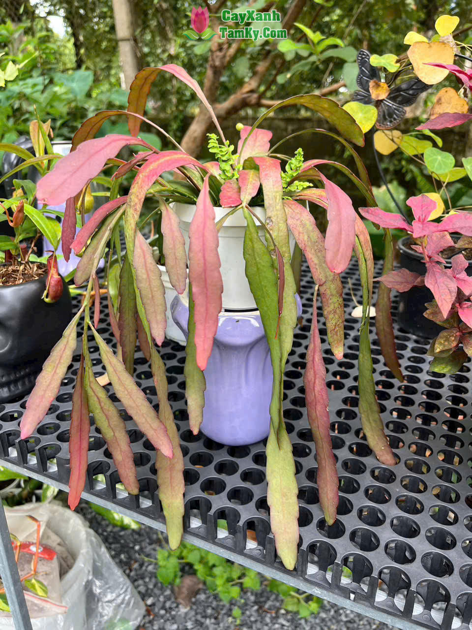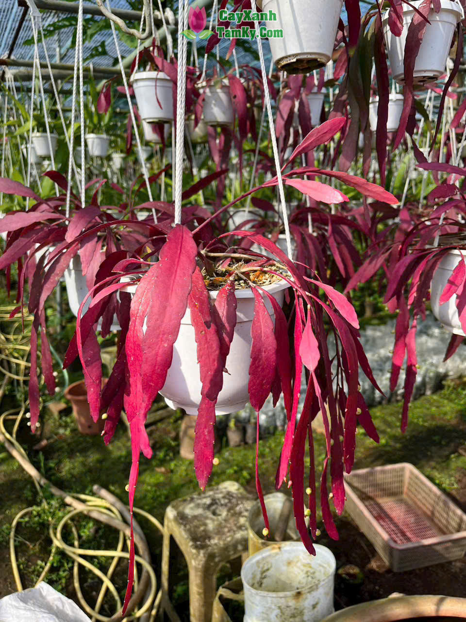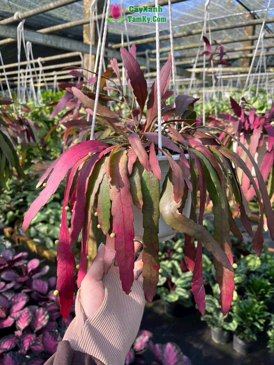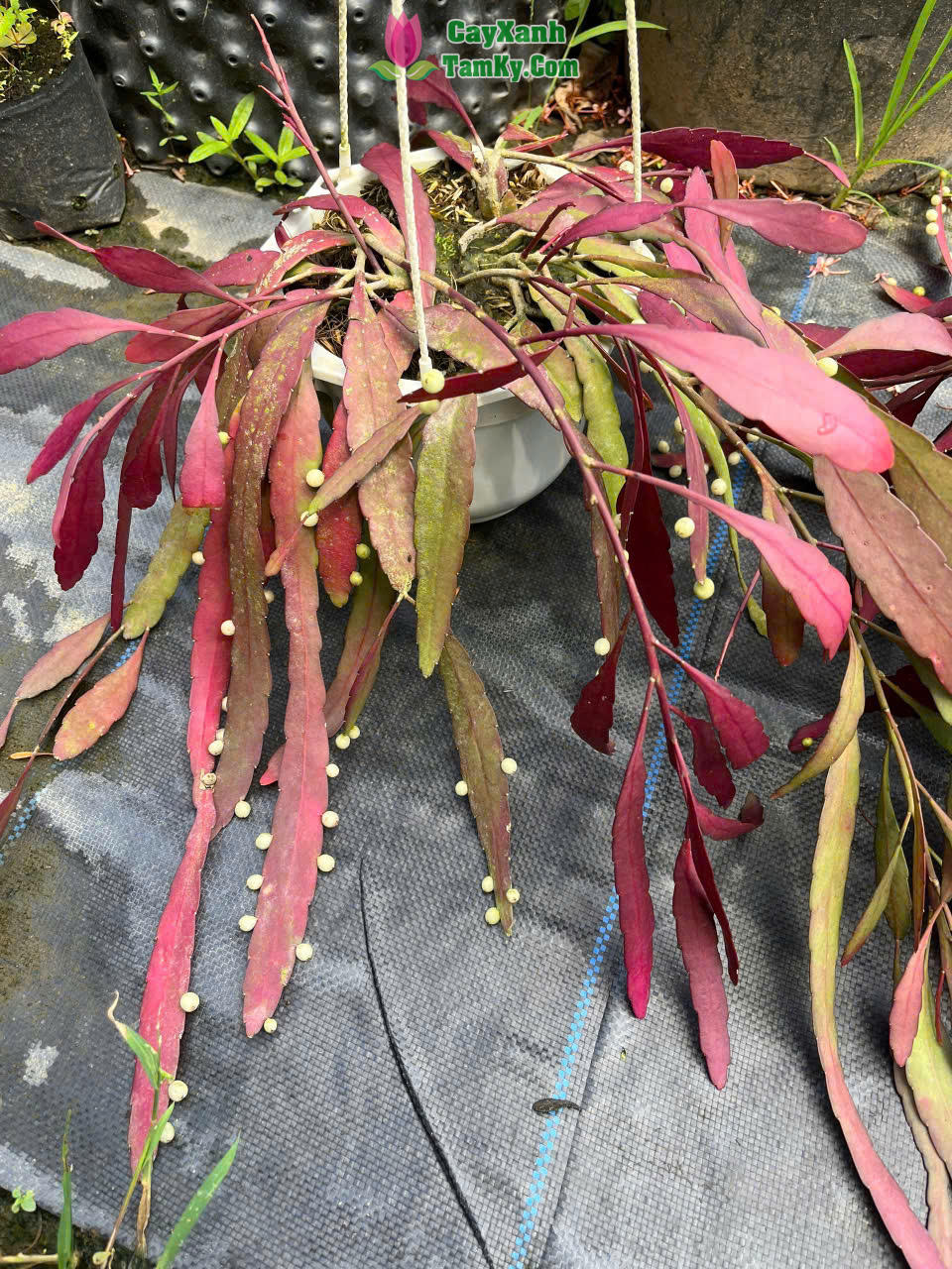 Không chỉ cuốn hút bởi vẻ ngoài rủ mềm mại đầy lãng mạn, loài cây biểu sinh họ xương rồng này còn khiến giới yêu cây cảnh mê mẩn bởi khả năng đổi màu kỳ diệu: từ xanh lục tươi mát chuyển dần sang sắc đỏ tía rực rỡ dưới ánh nắng. Đặc biệt hơn, những chuỗi quả tròn lấp lánh như hàng ngàn viên ngọc trai treo dọc cành lá không chỉ tạo nên một bức tranh thị giác ngoạn mục mà còn mang ý nghĩa phong thủy sâu sắc: thu hút tài lộc, may mắn và tượng trưng cho sự thành công viên mãn.