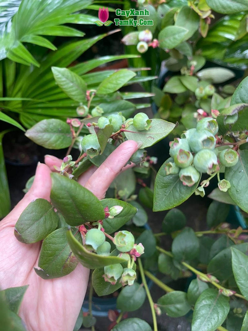 • Thụ phấn chéo (Mẹo): Việt quất tứ quý có thể tự thụ phấn, nhưng nếu bạn trồng 2 chậu trở lên (dù cùng giống) và đặt cạnh nhau, tỷ lệ đậu quả sẽ tăng lên đáng kể. Bạn cũng có thể dùng cọ nhỏ quét phấn hoa từ cây này sang cây khác vào buổi sáng sớm.
