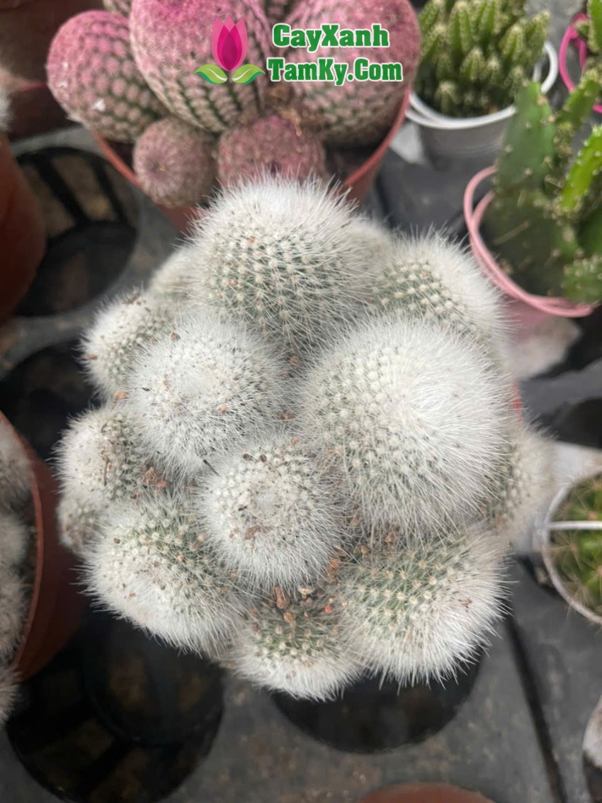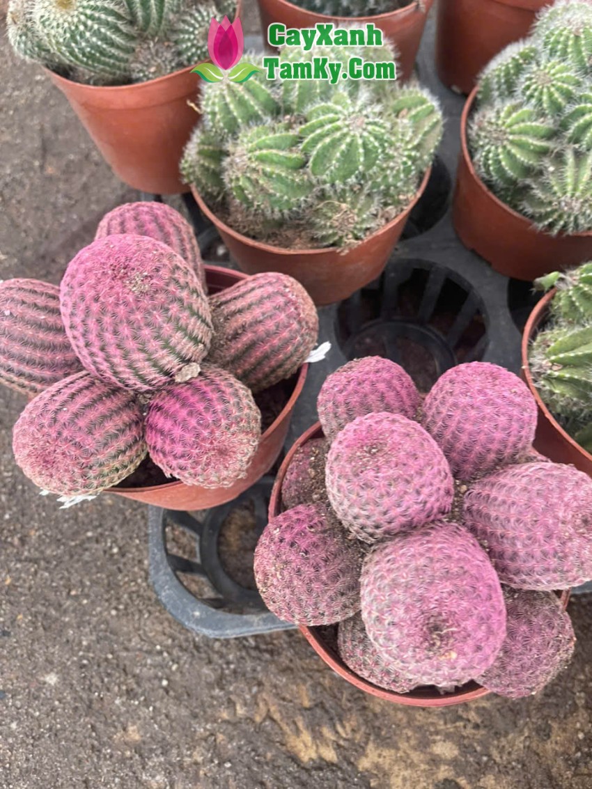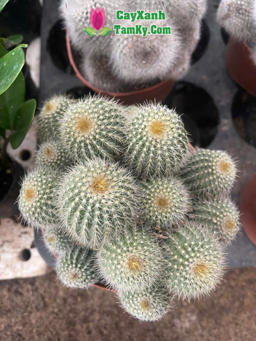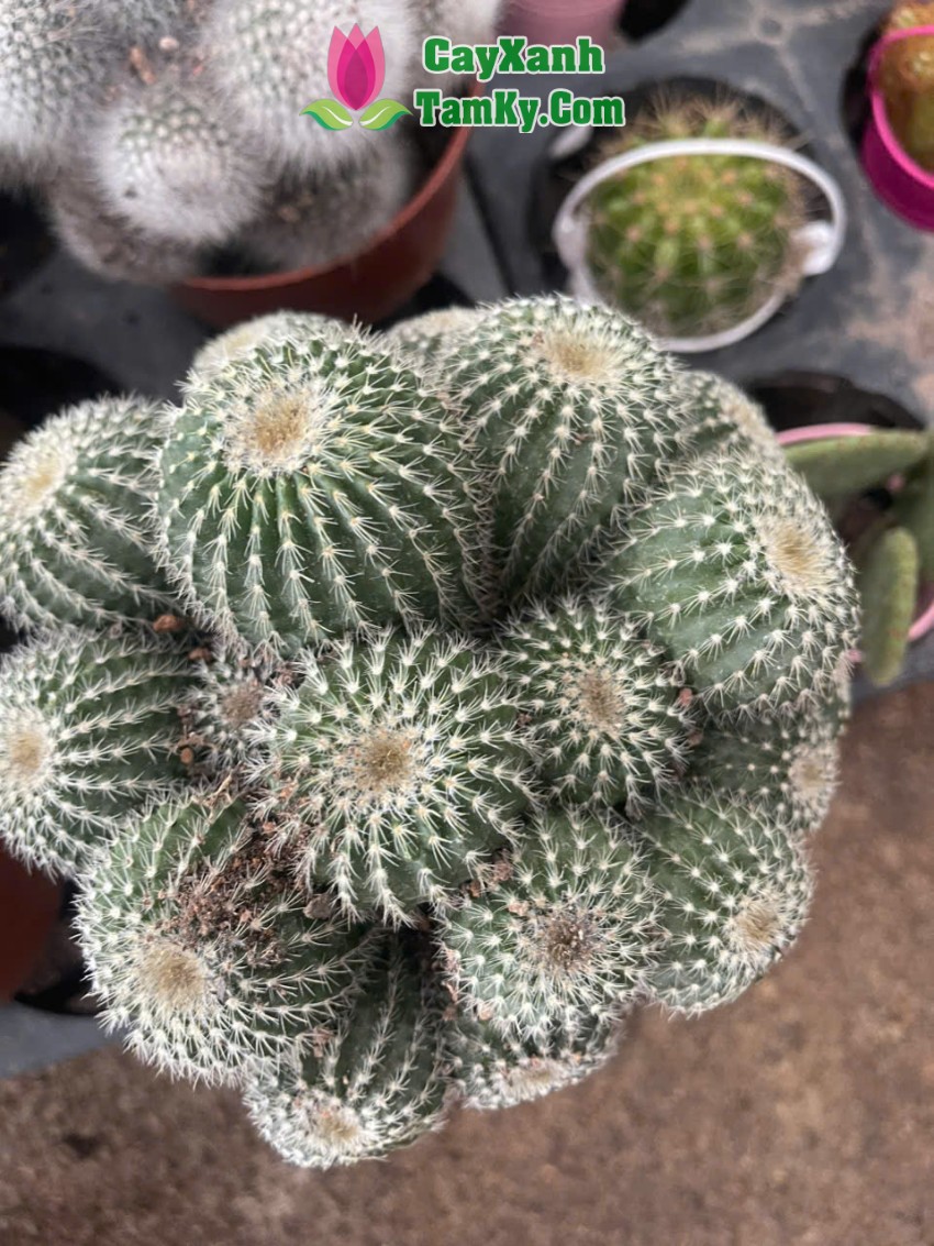Cây xương rồng có dạng tròn hoặc hơi dẹt, mọc thành nhiều nhánh kết chặt với nhau tạo thành cụm rất đẹp mắt. Kích thước nhỏ gọn, phù hợp trồng trong chậu mini hoặc chậu trang trí để bàn