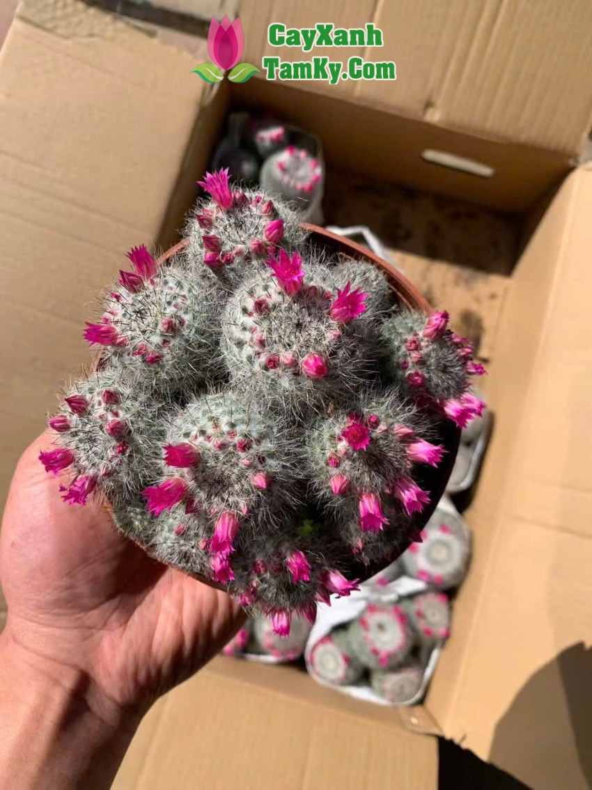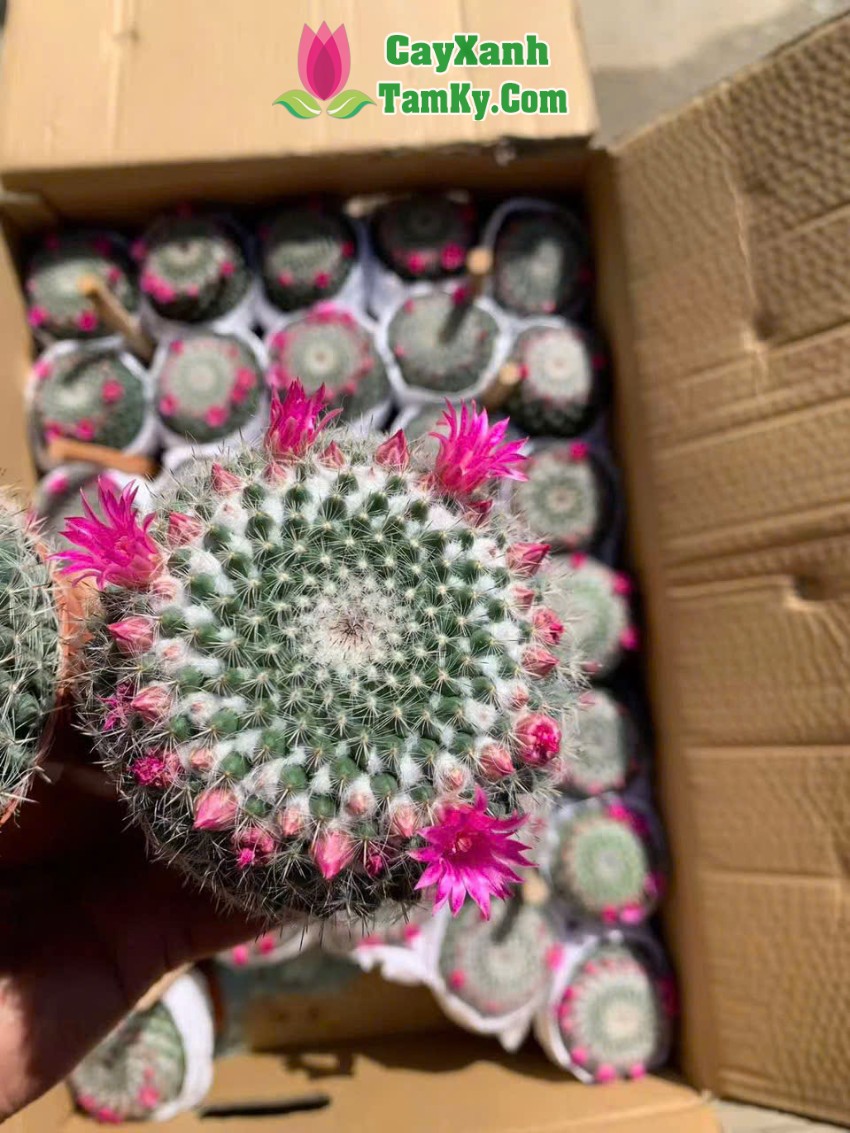 Cây xương rồng có hoa nhiều màu sắc đỏ, hồng, tím rất bắt mắt. Hoa mọc quanh thân, kích thước nhỏ nhưng rất nổi bật, hoa thường nở khi cây đủ nắng và được chăm sóc đúng cách